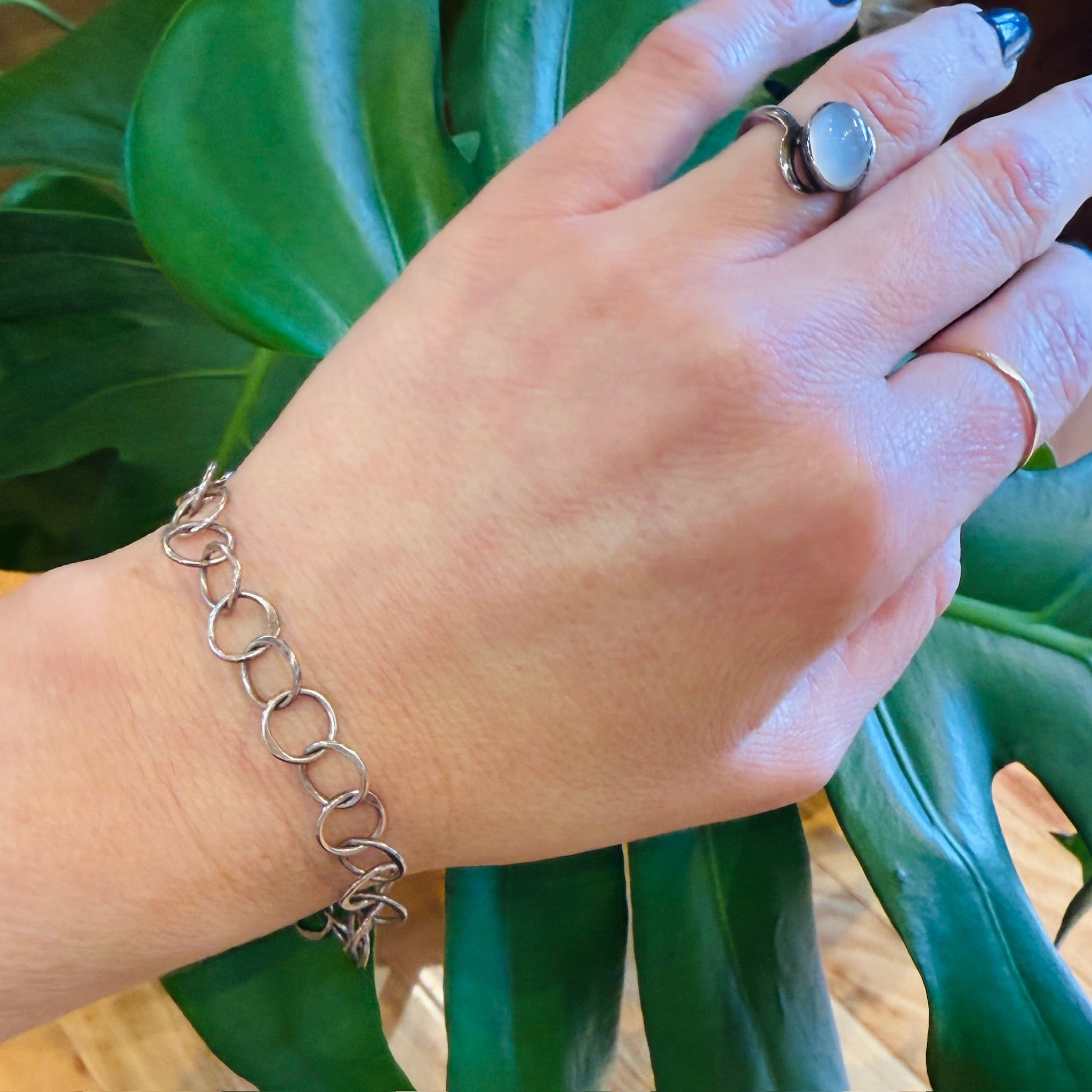 Edgy Sterling Silver Round Link Bracelet
