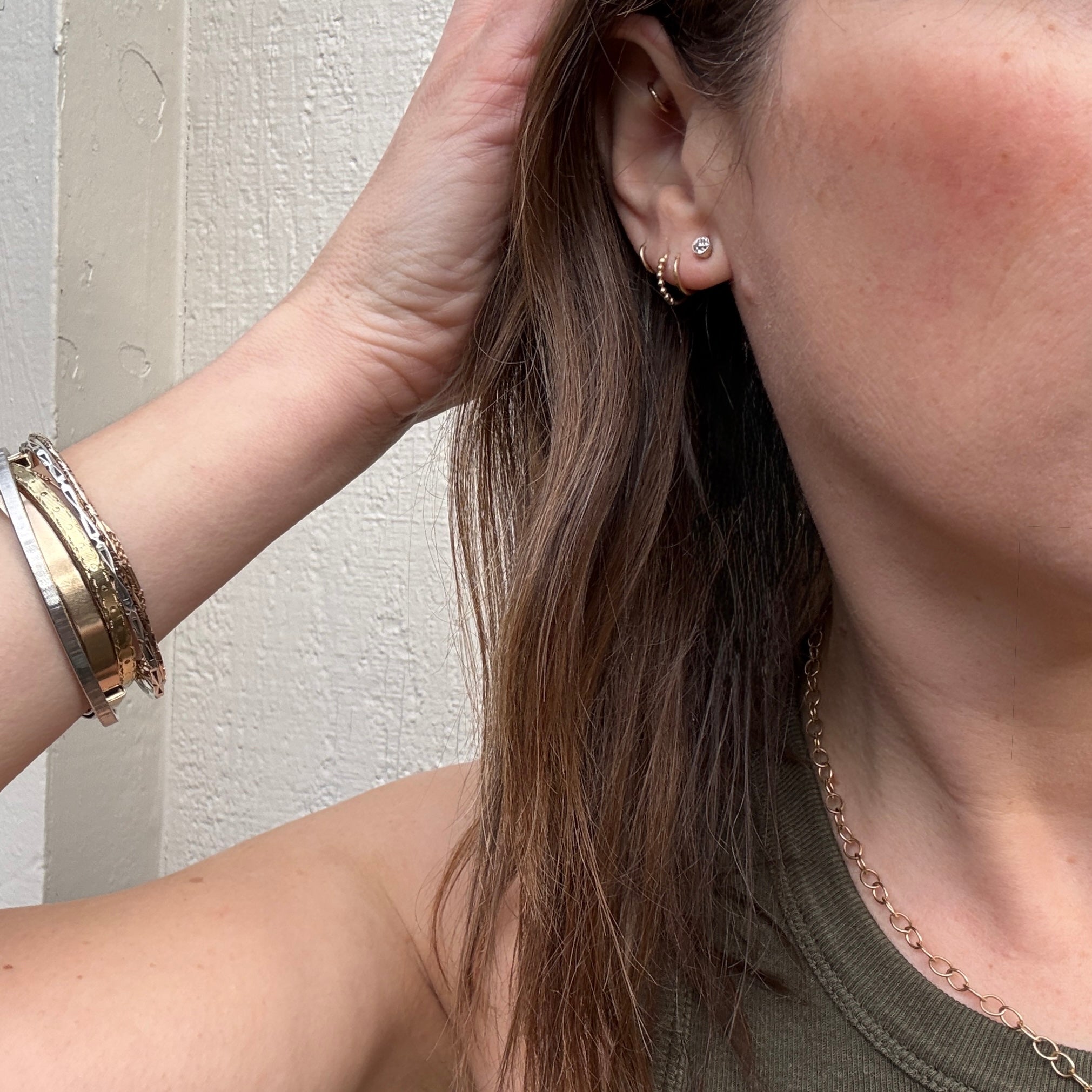 Each stud holds a twinkling old mine cut diamond in its original silver and gold setting, we just added 14k posts and backs to make a wonderful and unique pair of stud earrings. The diamond in their settings date from the 1880's, the gold we used to make them earrings is recycled. The diamonds have a total weight of .50ct.