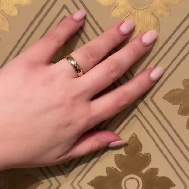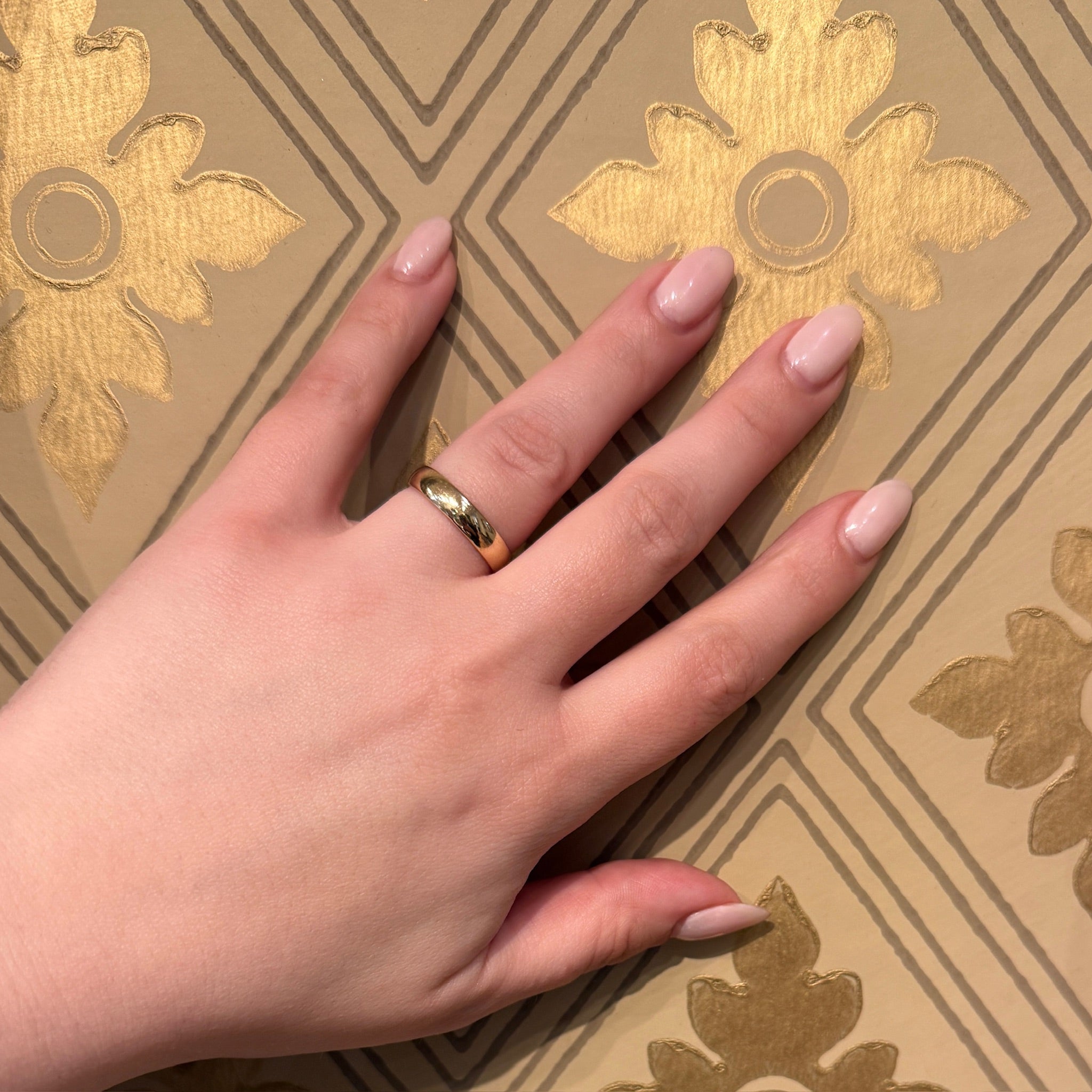 Cecil's 14k gold wedding band. This handsome ring has a shallow half round exterior and flat interior. The name "Cecil" is engraved inside the band. Its a classic. Circa 1970.