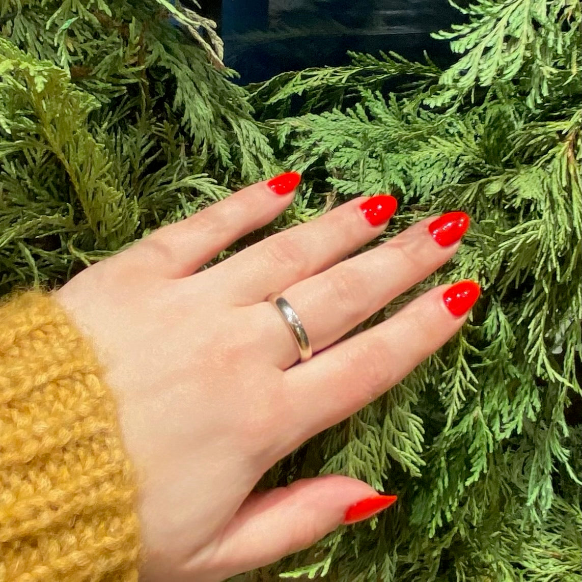 Details.....Currently a size 9.5. The band measures 4mm wide. In Very Good Vintage Condition. You should always expect some wear on vintage and antique pieces, we consider it part of the charm.