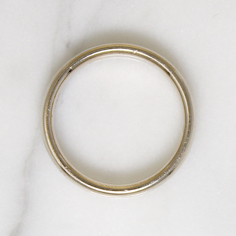 This 14k white gold wedding band is a rare find. A vintage white gold band in our most commonly requested size? Yes please. The half round, comfort fit band is all soft edges with a satisfying weight. Circa 1970.