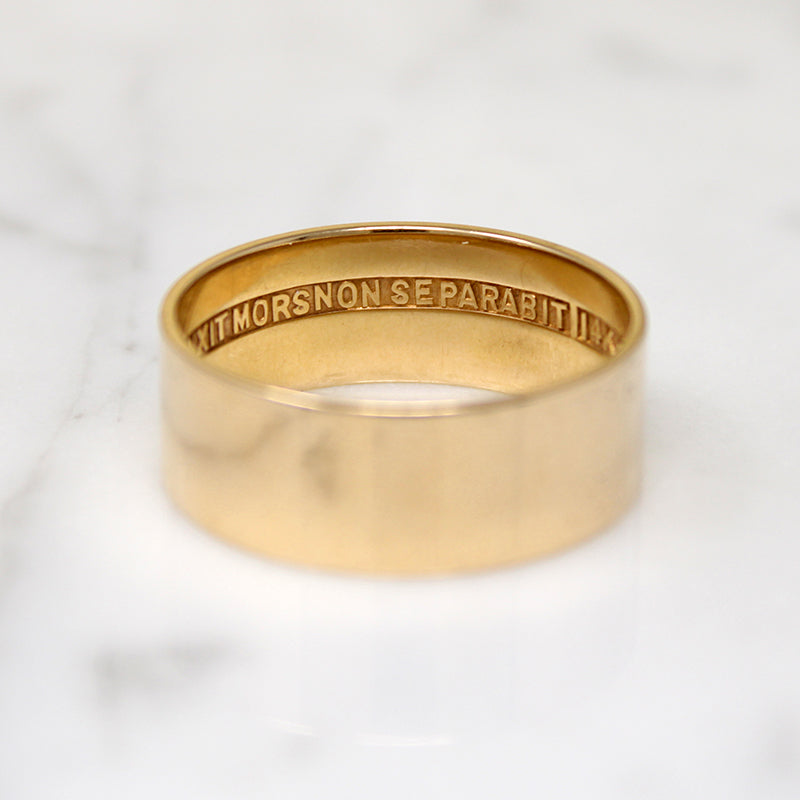 Wide Flat 14k Gold Band with Latin Inscription