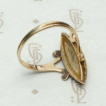 Details.....Currently a size 7.5, we will size this ring for no additional charge. The top measures 21.3mm by 7.6mm, the band measures 1.9mm. In Very Good vintage condition, you should always expect some wear on your vintage and antique jewels, we consider it part of their charm.
