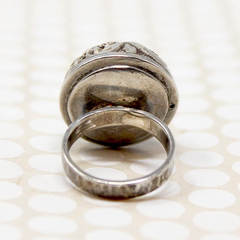 Details.....Currently a size 3.75. For a fee, silver rings can usually be sized within two sizes. Please contact us for sizing information about this ring. The top of the ring measures 12mm in diameter and 15mm in profile. The band measures 3.1mm wide. In Very Good Vintage Condition. You should always expect some wear on vintage and antique jewels, we consider it part of the charm.