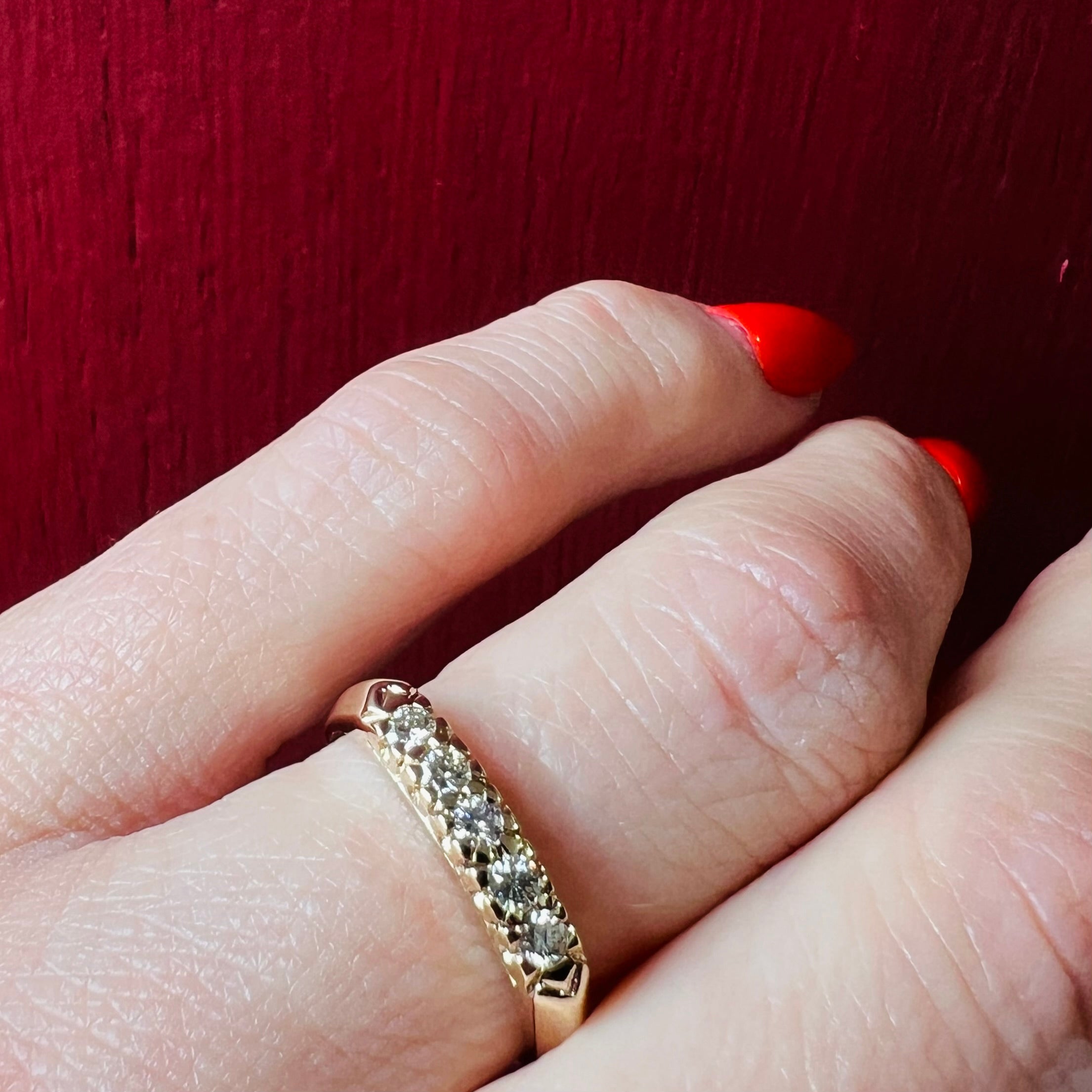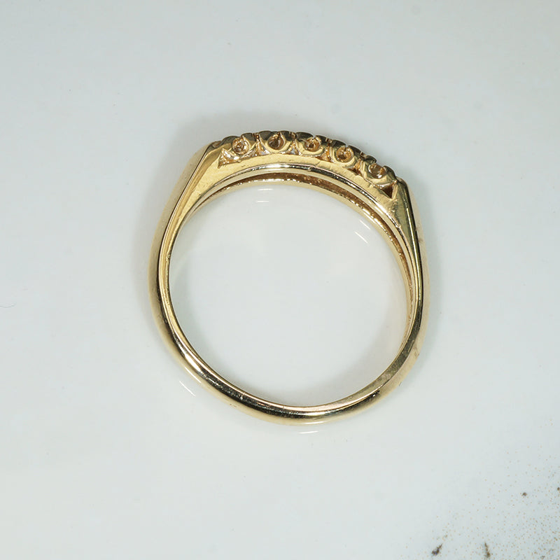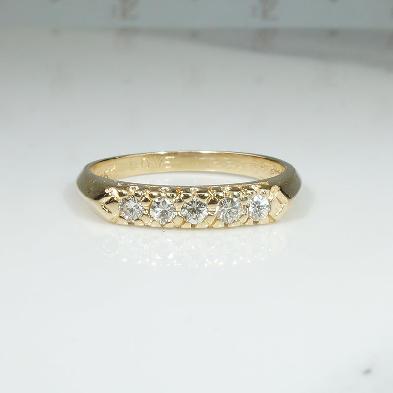 Five Diamonds in Yellow Gold Retro Wedding Band
