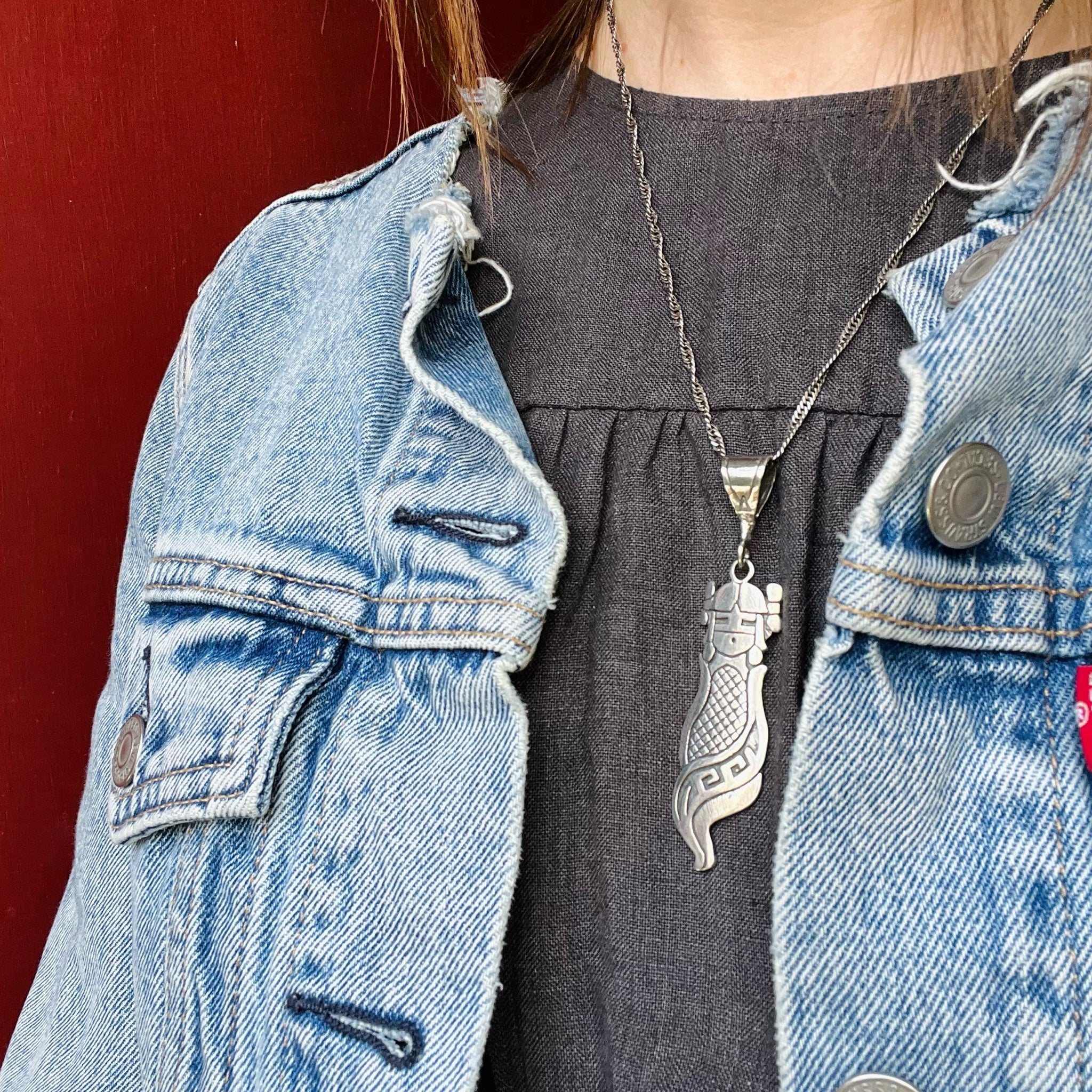 Lovely Hopi Silver Overlay Corn Maiden Necklace