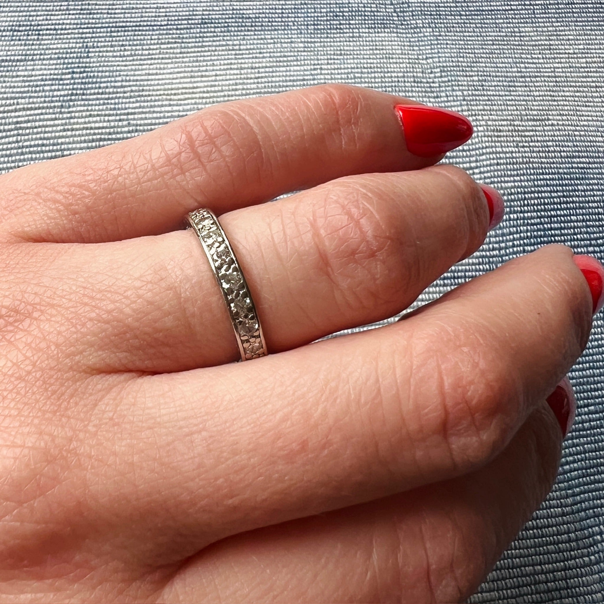 Details.....A size 7. It cannot be resized. The ring measures 3.2mm wide. In Very Good Vintage Condition. You should always expect some wear on vintage and antique jewels; we consider it part of the charm.