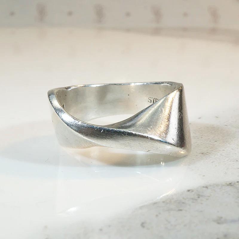 Sculptural Sterling Silver Modernist Ring by H. Steig