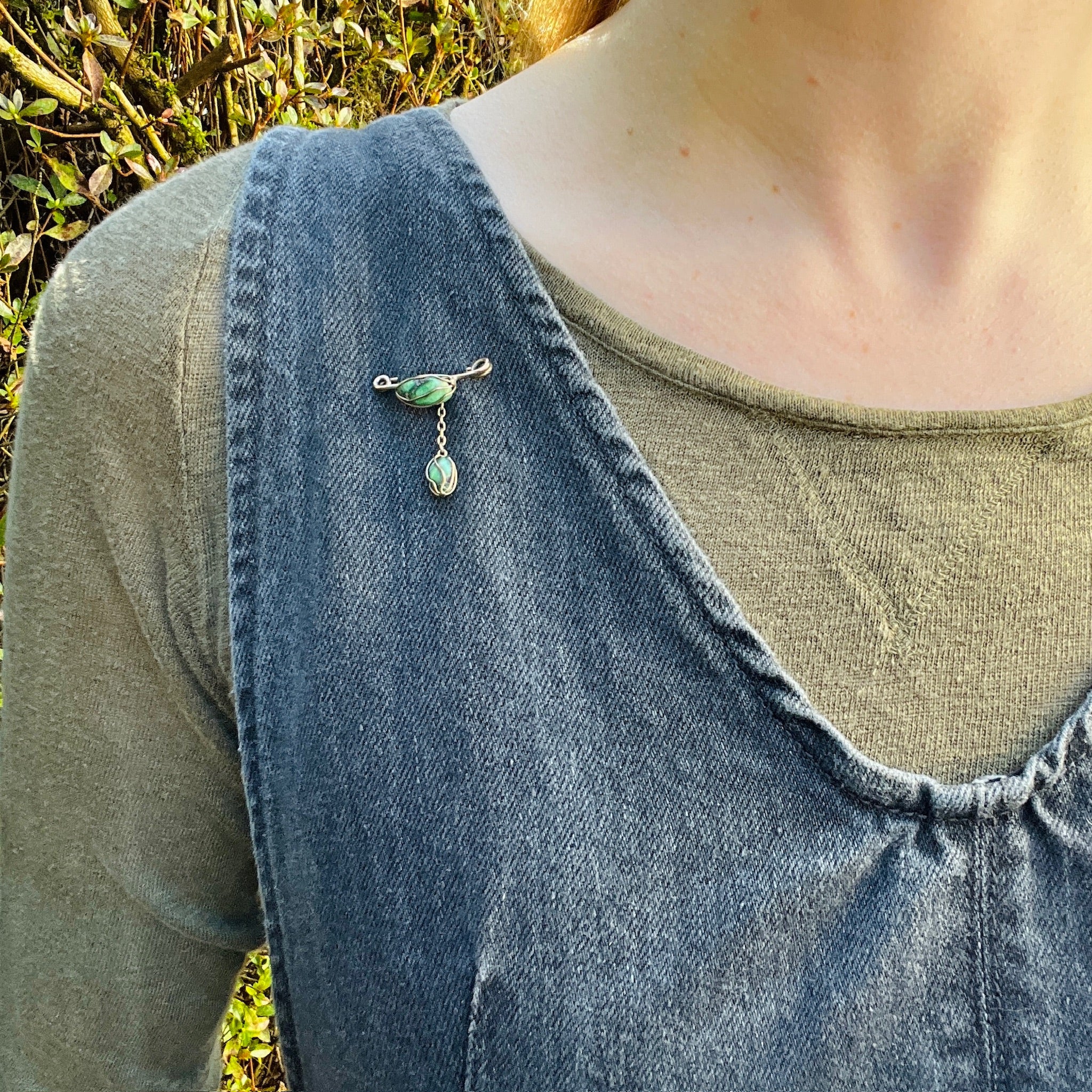 Wire-Wrapped Turquoise & 9k Safety Pin Brooch